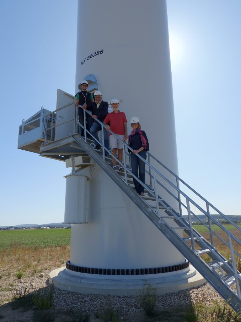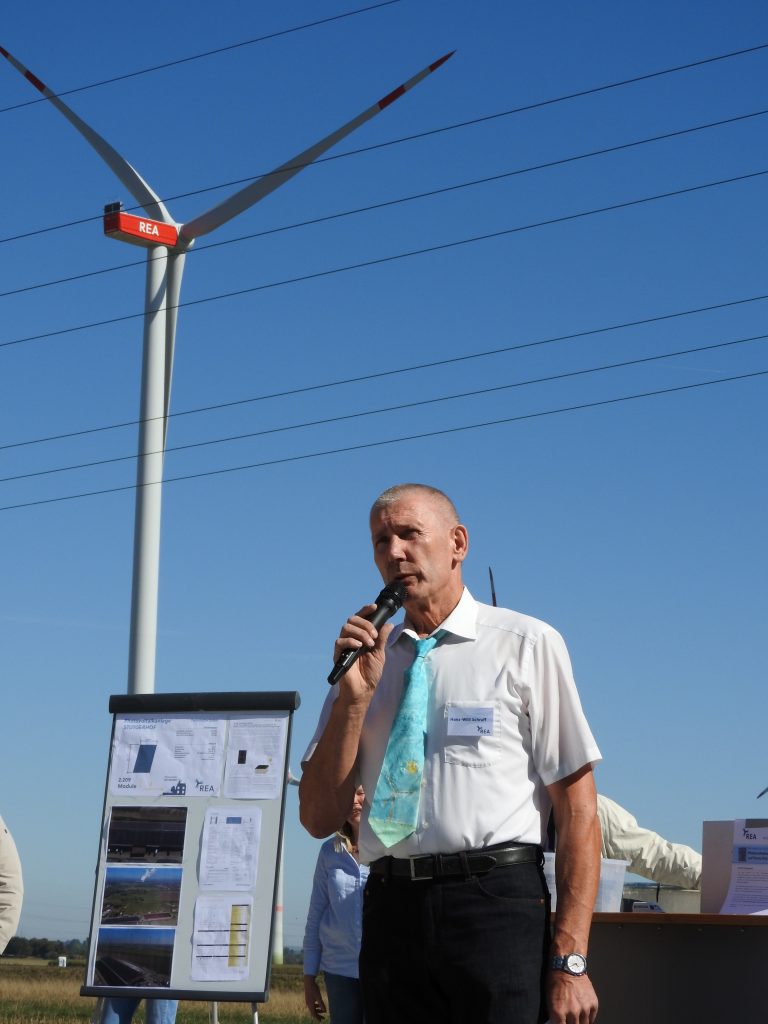 In einer Begrüßung durch Bürgermeister Hr. Göbbels und der REA wurde den Besuchern die Zusammenarbeit in der Vorplanung und dem Bau der Windenergieanlage nähergebracht und durch gezielte Vergleiche die Ertragsproduktion von Windenergieanlagen veranschaulicht.